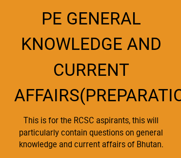 This is for the RCSC aspirants, this will particularly contain questions on general knowledge and current affairs of Bhutan.